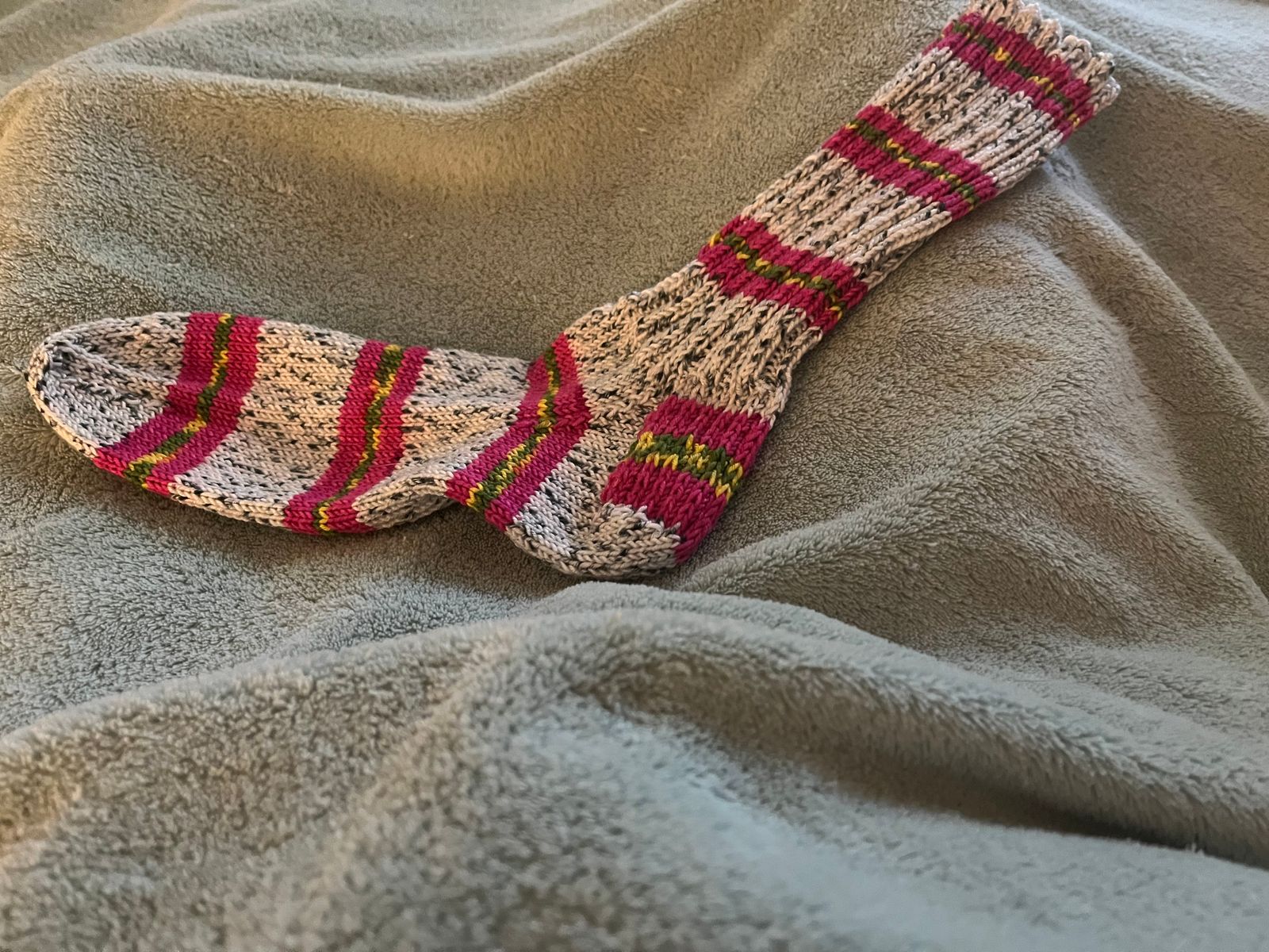The Fruits sock yarn knit into really cute socks for my grandson!