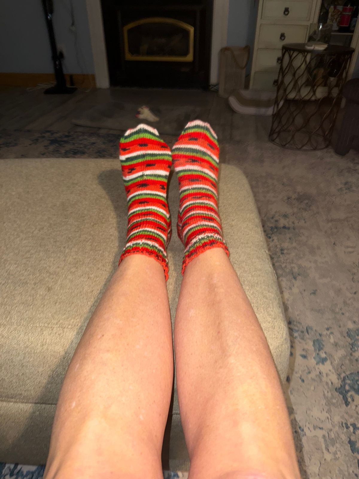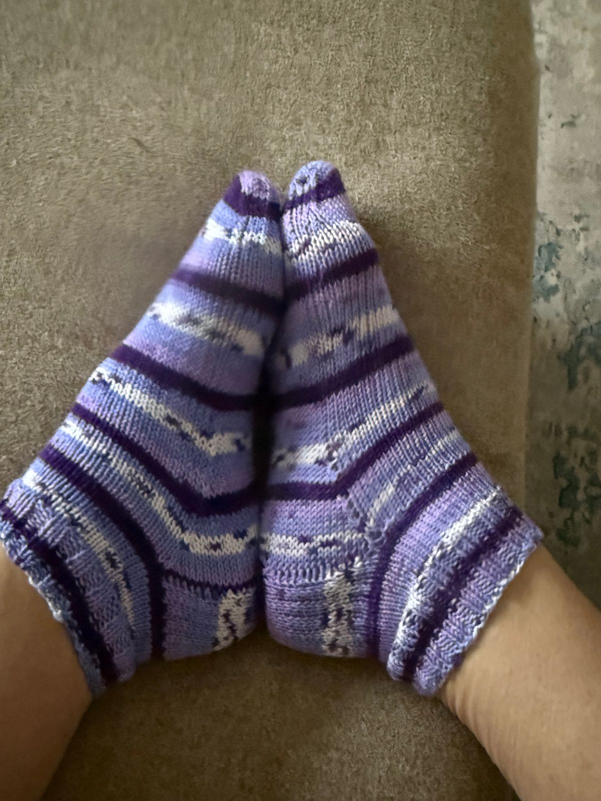 This is a fun sock yarn that I am delighted to use. It has a lovely hand and makes a wonderful self stripping pattern.