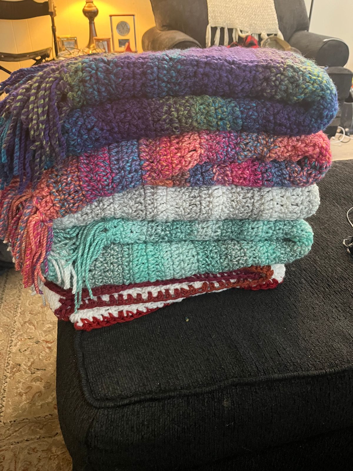 I’m using this yarn to knit the (free) Wild Oats Blanket pattern and it’s working out beautifully. Puzzle is just a bit stripe-y, but the crossover in the stitches serves to break it just enough to blend them.