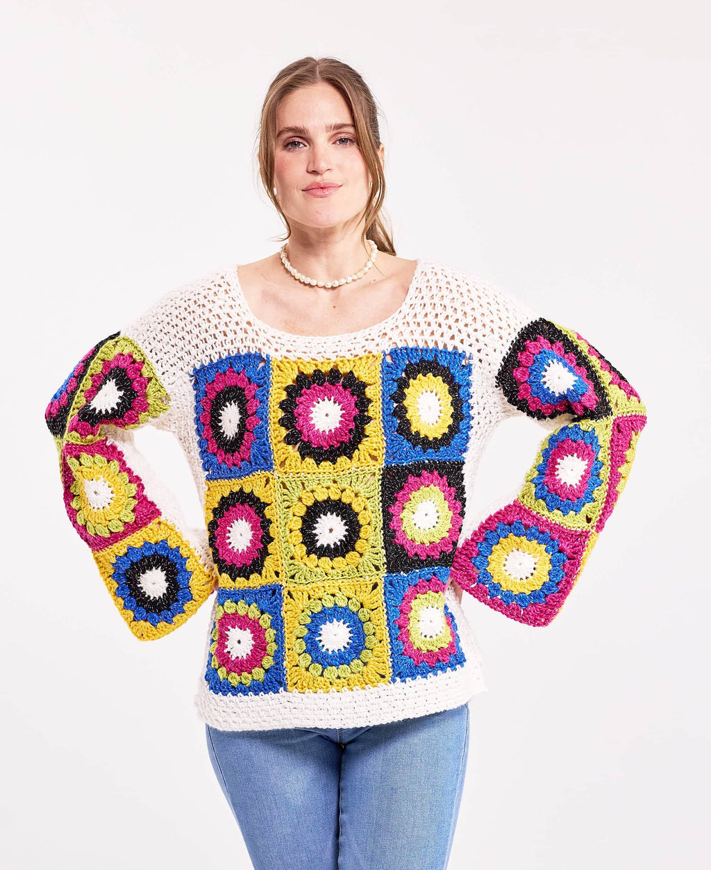 Crochet this Granny Square Sweater with Anti-Pilling Everyday® Worsted Luster.