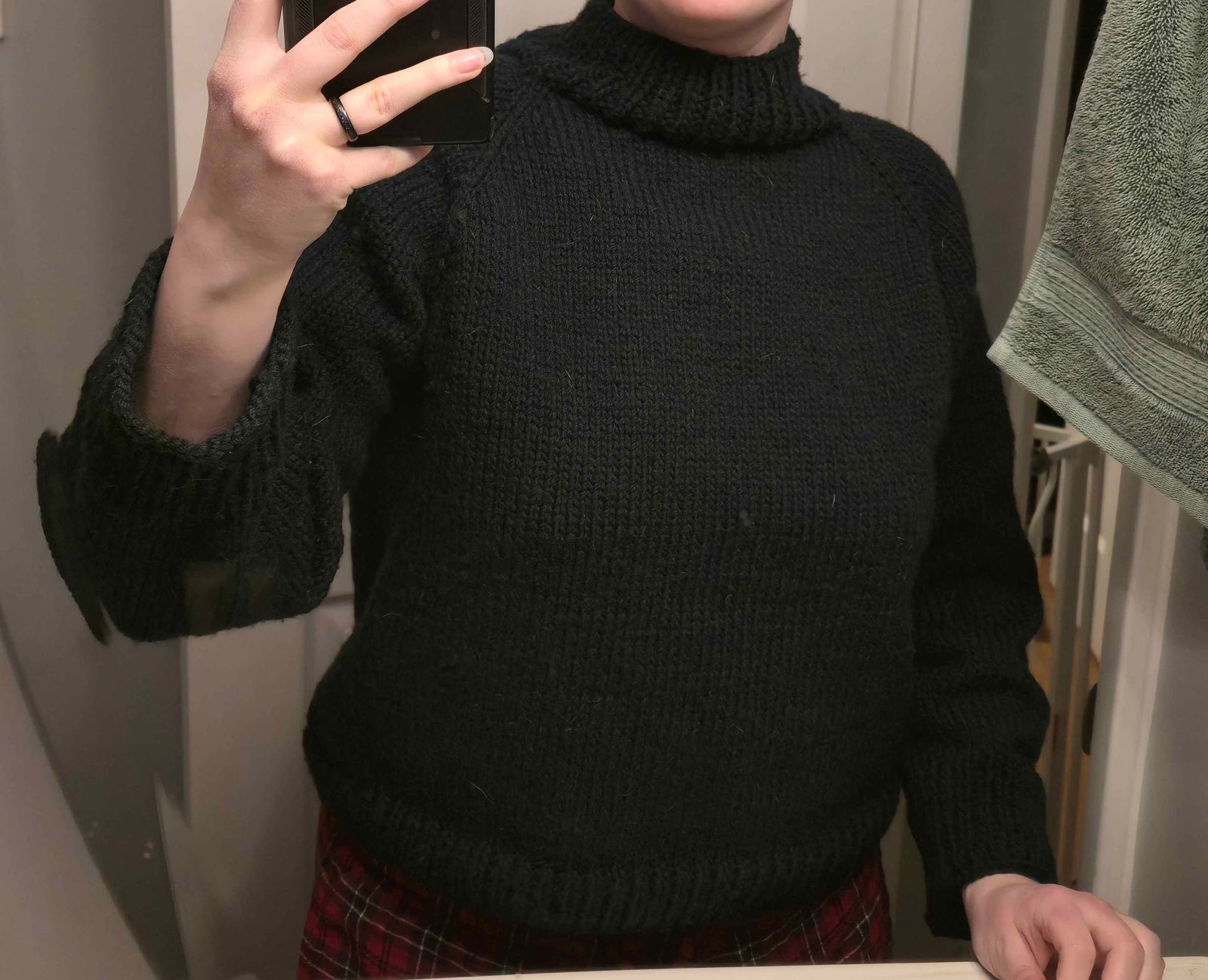 I made a (90cm torso size, to the belt line pre-block) sweater with this yarn using 5.5cm and 4.5cm needles for a tight weave. I ended up using 6.5 balls of yarn for this project. Upon blocking, the size didn't change significantly in the arms and torso length.