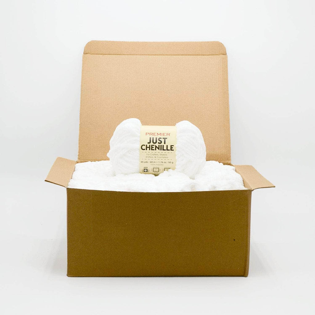 Get a box of yarn right to your doorstep! This box of Just Yarn Chenille contains 12 skeins (each skein is 50g), totaling 600 grams of yarn.
