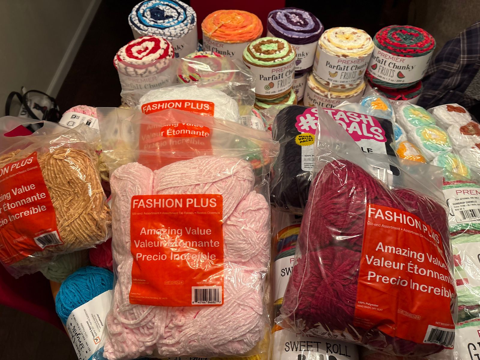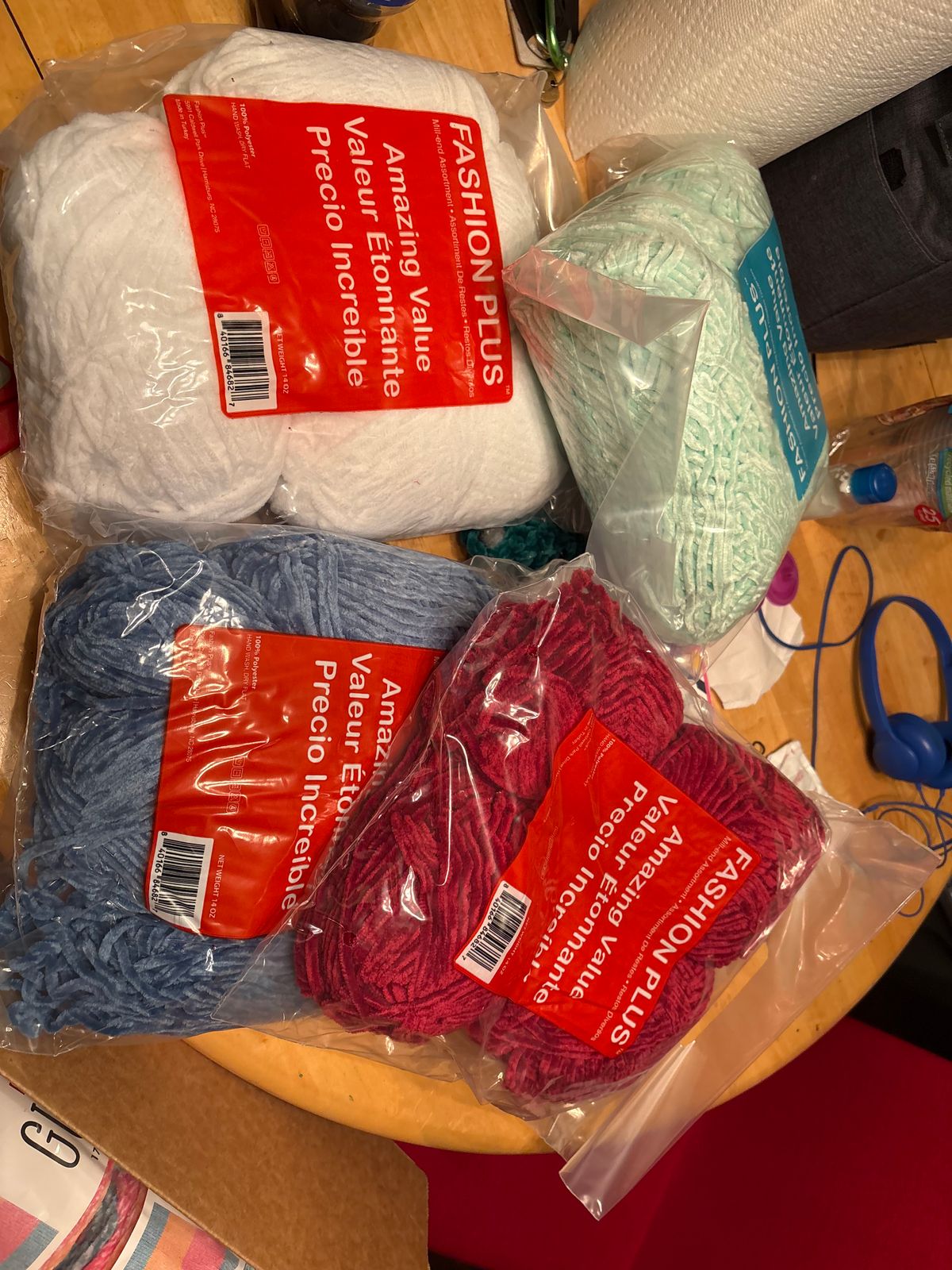Chenille yarn in a 400g bag of the same color and thickness. Available in assorted color bags (may be solids or multis)!
