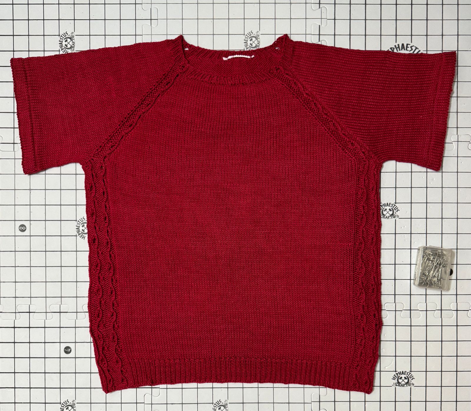 If you are familiar with how most DK 100% cotton tends to be then I would say it’s only a hair thinner than something like Paintbox DK. But if you’re used to wool or acrylic DK then you will be in for a big surprise with how thin it is. The 3rd image is Afternoon Cotton (red, DK) compared to Malabrigo Ultimate Sock (white, fingering) unstretched. The white wool blend yarn will stretch to be thinner than the red cotton, which does not really stretch. So be aware of gauge when substituting yarn with this one.