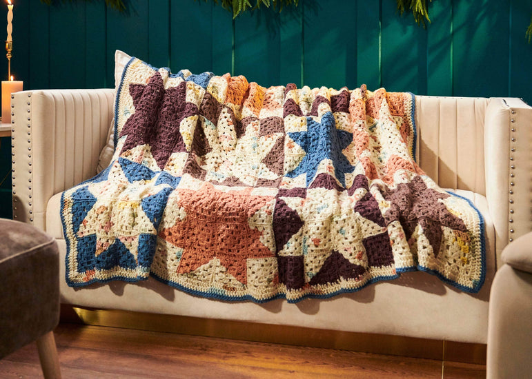 This crochet mosaic blanket pattern is made using Premier® Yarns Anti-Pilling Everyday® Painterly and Premier® Yarns Anti-Pilling Everyday® Worsted yarns.