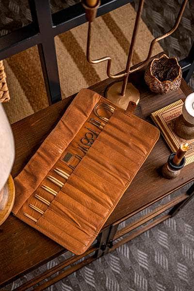 Keep your embroidery yarns and threads perfectly organized with the Elona case from muud. Great accessories are indispensable – whether you’re an expert cross stitcher or a novice to the needle craft. Store your embroidery threads in the small pockets to keep them neatly arranged and tangle free. This genuine leather case also features a two-snap closure that adjusts to fit the contents of your case.