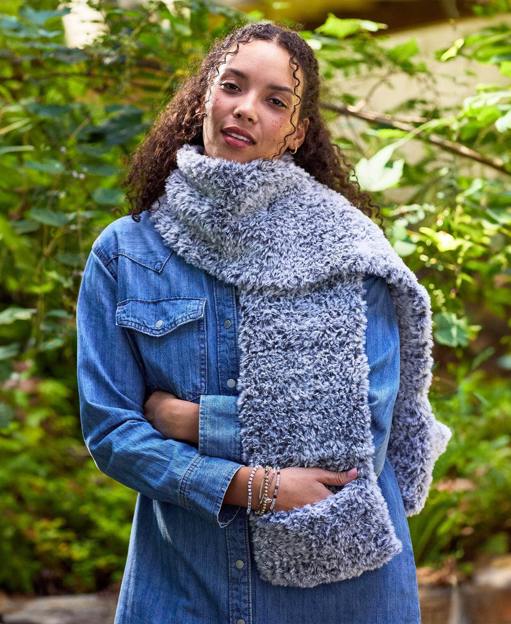 Crochet this Pocket Full of Fur Scarf with PremierĀ® Yarns Faux Fur