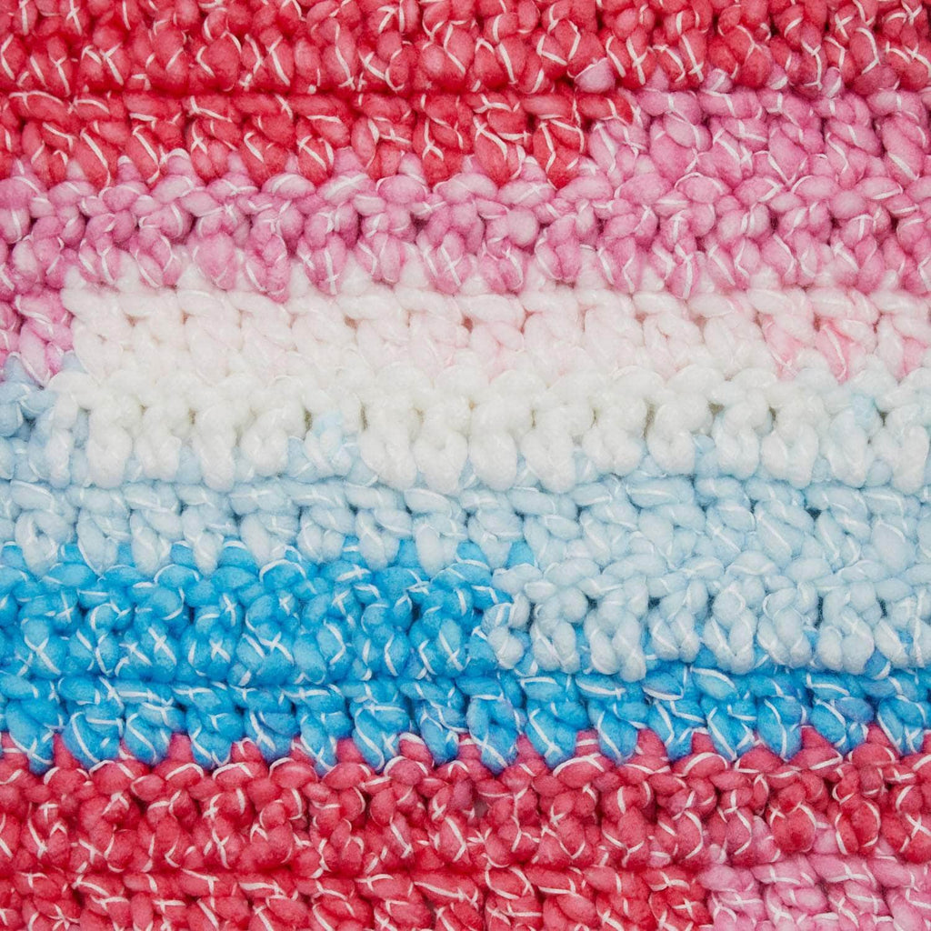 This is a #6, Super Bulky yarn with a blend of acrylic and polyester boasting unmatched softness with a single-ply construction wrapped with a unique crisscross effect. Not just pretty, it’s practical. Make a mistake, no worries. The crisscross binder holds in those loose strands making it easier to restart your project.