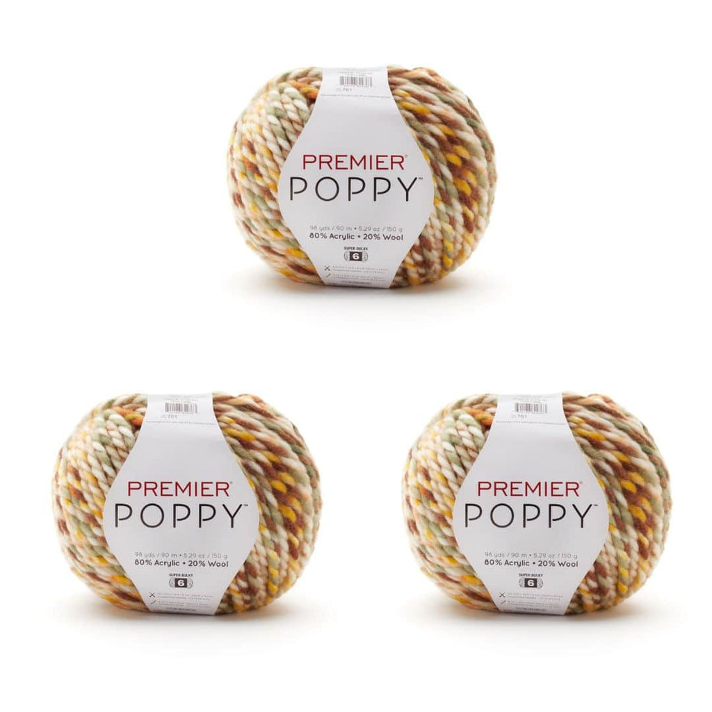 Premier Poppy has arrived just in time for cold-weather crafting. This acrylic/wool blend has a beautiful palette with 16 unique colors. This #6 weight super bulky yarn is machine washable for easy care. If you are looking for a yarn that works up quickly and creates stunning projects for gifting or keeping, look no further than Premier Poppy.