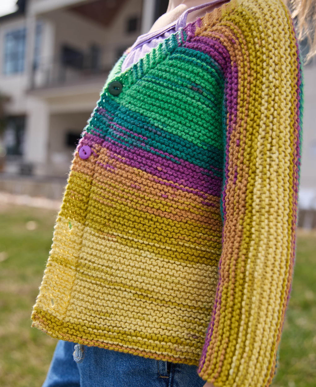 Finished Measurements: Chest: 24 (26½, 28, 29½) (31¼, 32¾, 34½)” (buttoned)