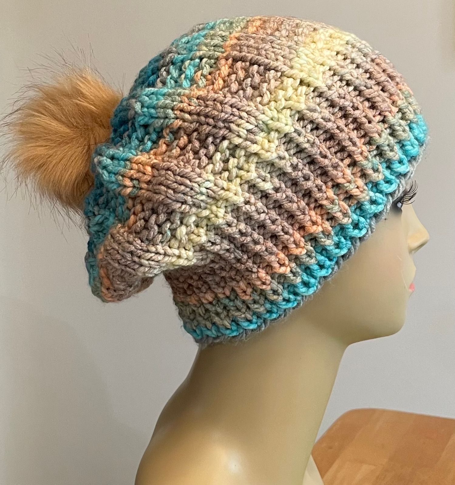I love the colors and the thickness of the yarn. These hats are not only beautiful, they are hardy and some I've worn for more than three years without much wear! I love this yarn!! You can find my pattern for this hat on Ravelry cloudheights Vagrant Winter PomPom Hat! https://www.ravelry.com/patterns/library/vagrant-winter-pom-pom-hat