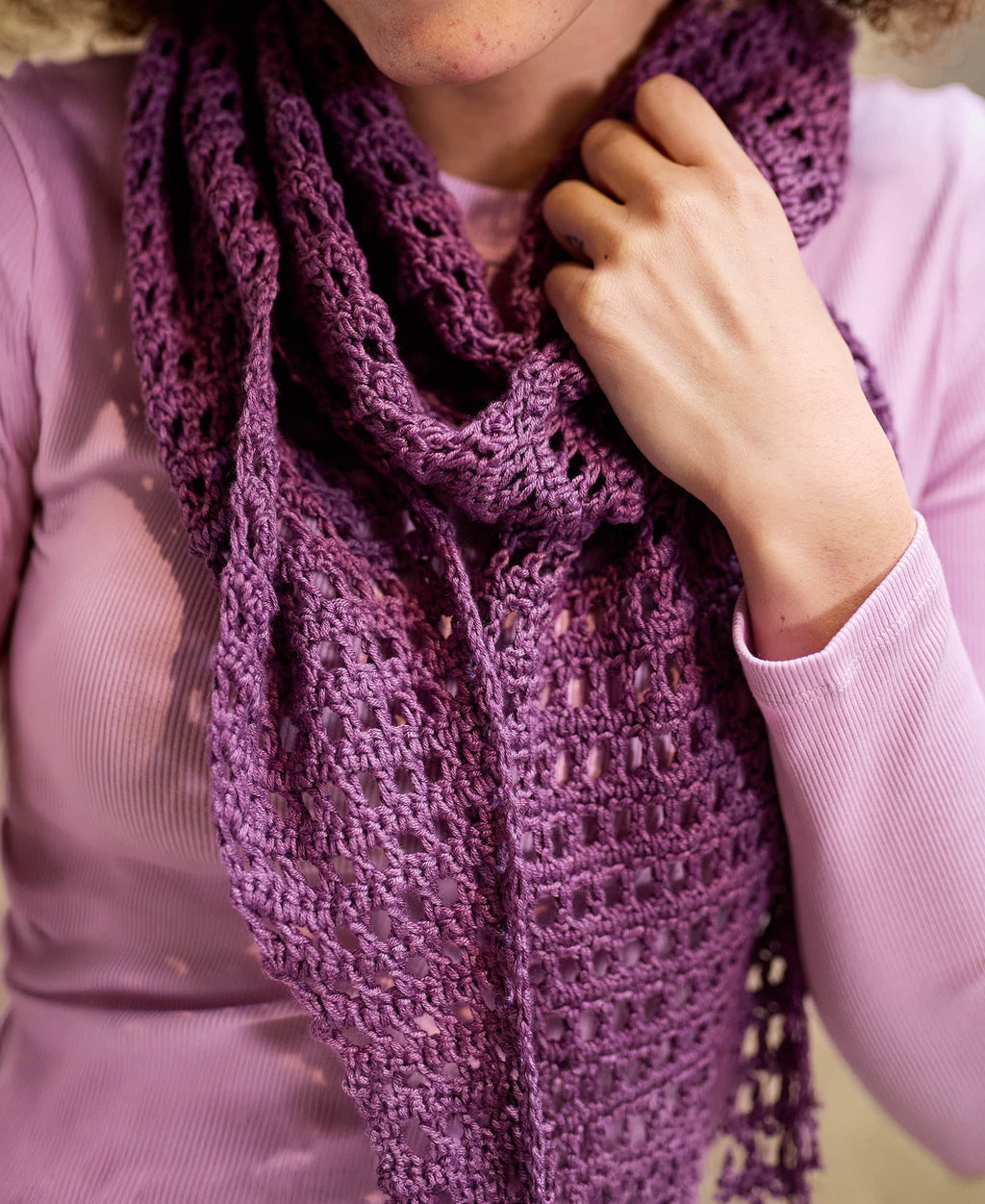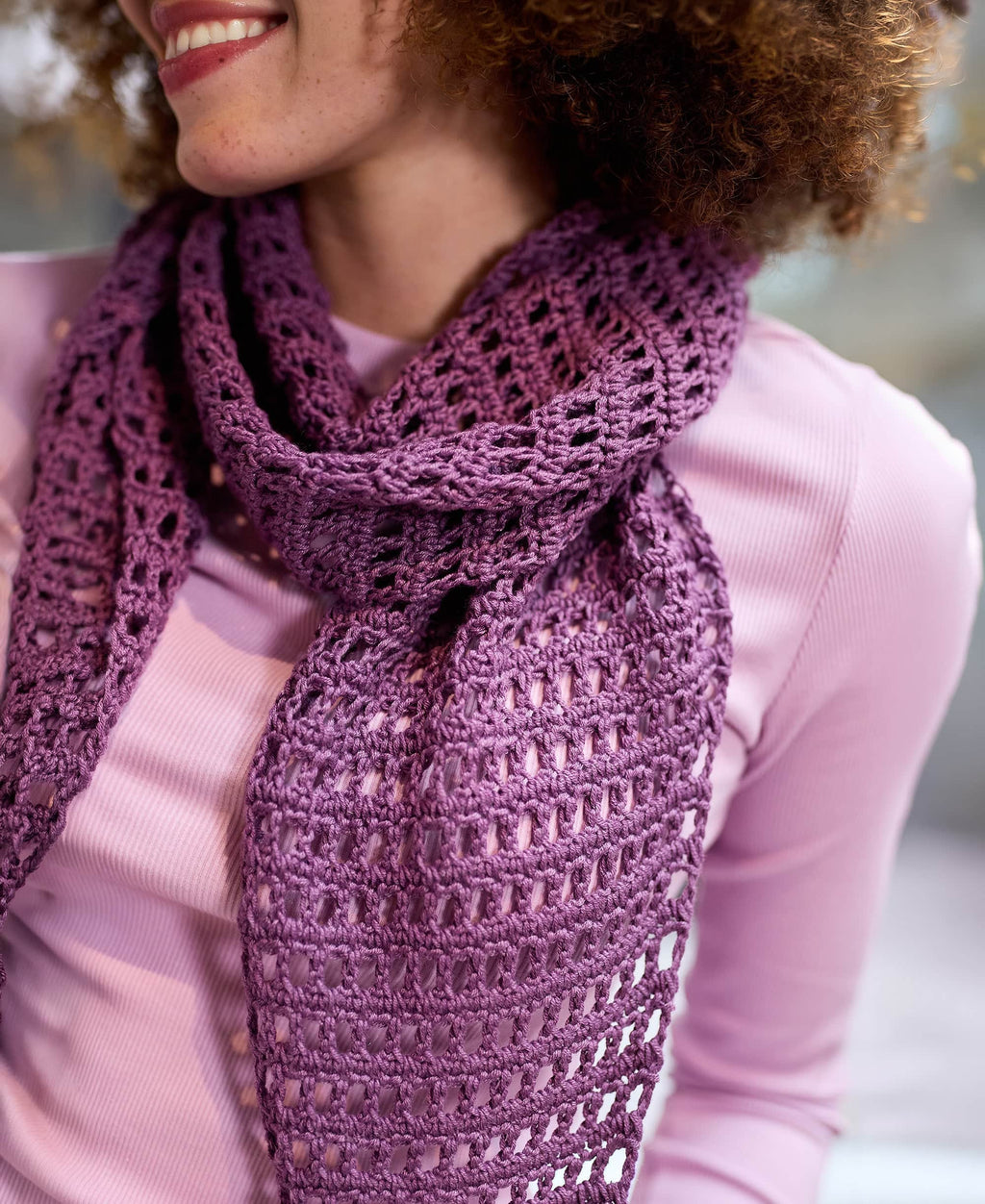 Crochet this Mesh Scarf with Premier® Yarns Cotton Fair® yarn.