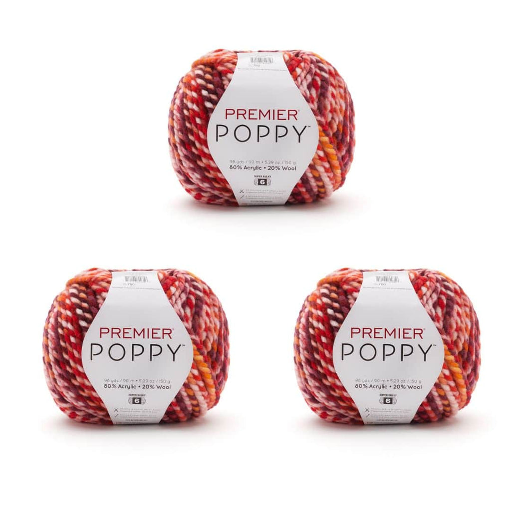 Premier Poppy has arrived just in time for cold-weather crafting. This acrylic/wool blend has a beautiful palette with 16 unique colors. This #6 weight super bulky yarn is machine washable for easy care. If you are looking for a yarn that works up quickly and creates stunning projects for gifting or keeping, look no further than Premier Poppy.