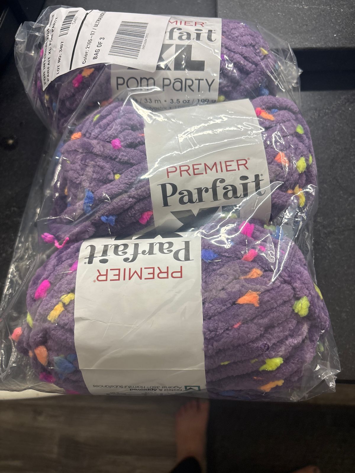 Our jumbo weight chenille yarn now comes with some big flair! Our tried and true, washable and dryable chenille yarn features colorful neon pom poms and glitter threads throughout, adding pops of color and sparkle to any project.
