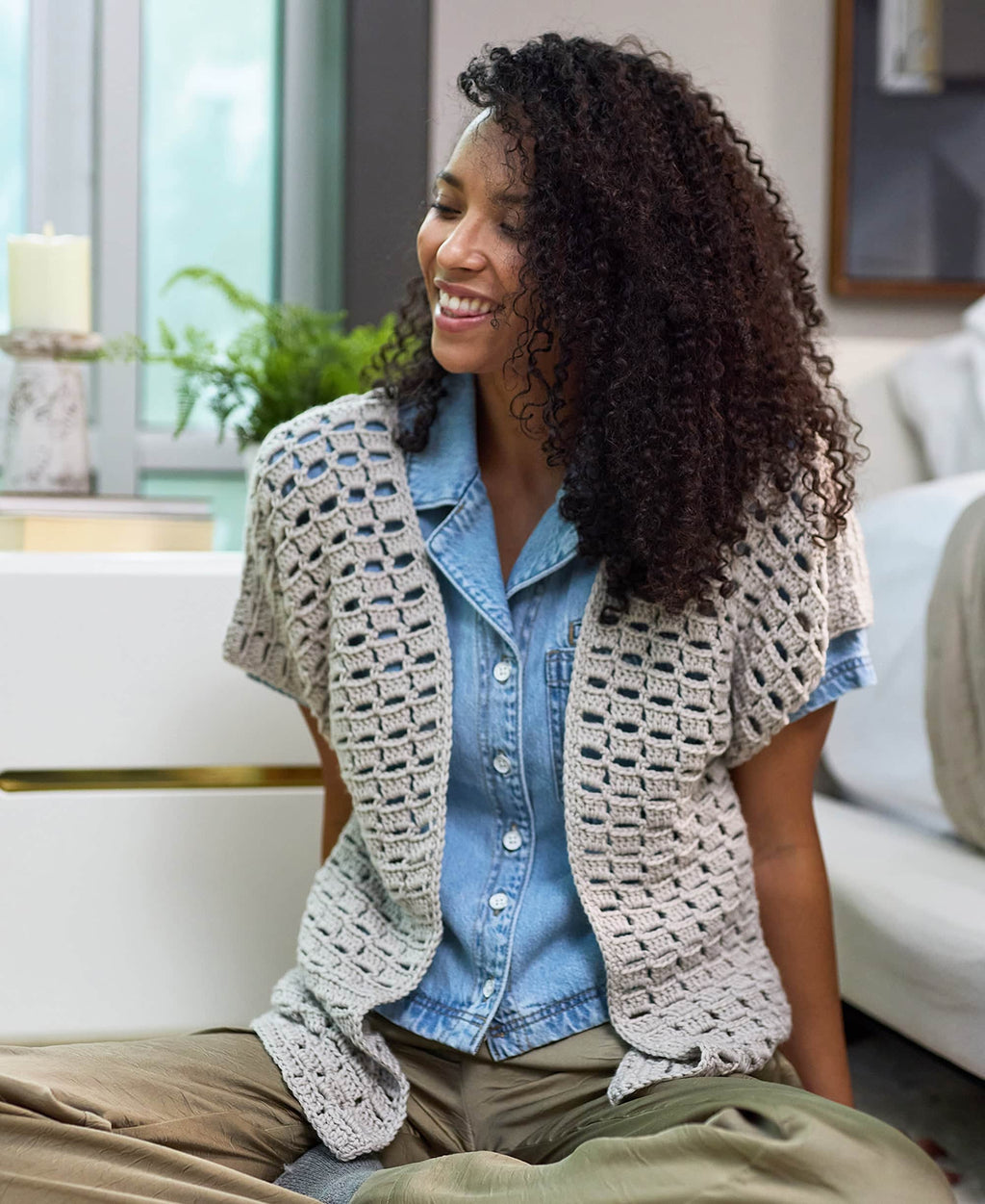Crochet this Stacked Blocks Cardi with Premier Anti-Pilling Select®